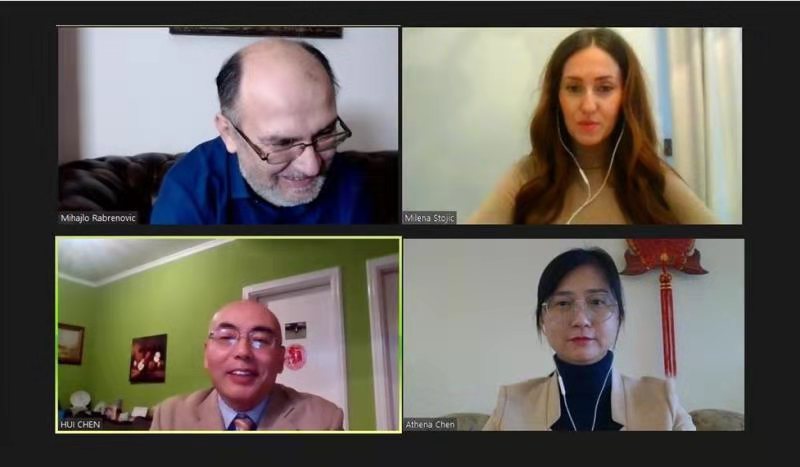 当地时间12月21日,塞尔维亚麦加特伦德大学(Megatrend University)负责国际合作的副校长米哈伊洛·拉布雷诺瓦奇(Mihajlo Rabrenović)与诺维萨德大学孔子学院中方院长陈晦通过zoom meeting进行网络会谈,表达新年问候和商谈2021年度中文教学事宜。