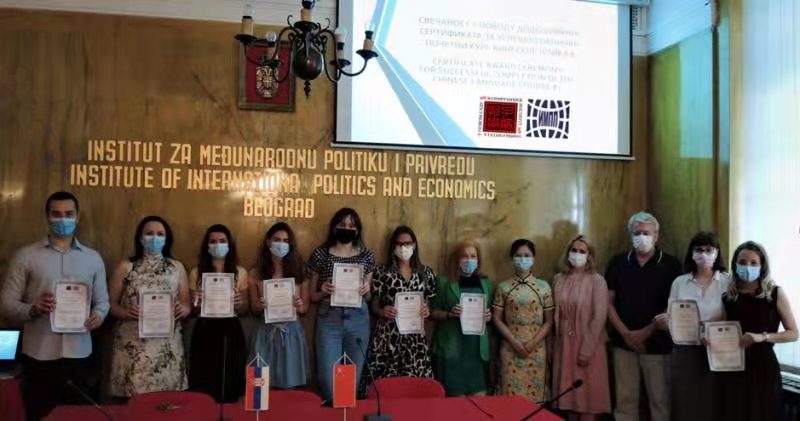 当地时间7月2日,我校合作共建的诺维萨德大学孔子学院与塞尔维亚国际政治经济研究院(Institute of International Politics and Economics of Serbia)合作开设的基础汉语A1班在该院举行了结课仪式。该院院长布拉尼斯拉夫·乔尔杰维奇(Branislav Dordevic)和孔子学院中方院长陈晦(通过视频)出席典礼并分别致辞。
