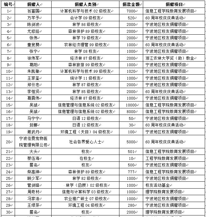 2018年10月9日,信息管理与信息系统02级吴斌等校友及宁波佳雯宠物医院管理有限公司共捐赠人民币柒万壹仟柒佰零玖元,特此鸣谢!