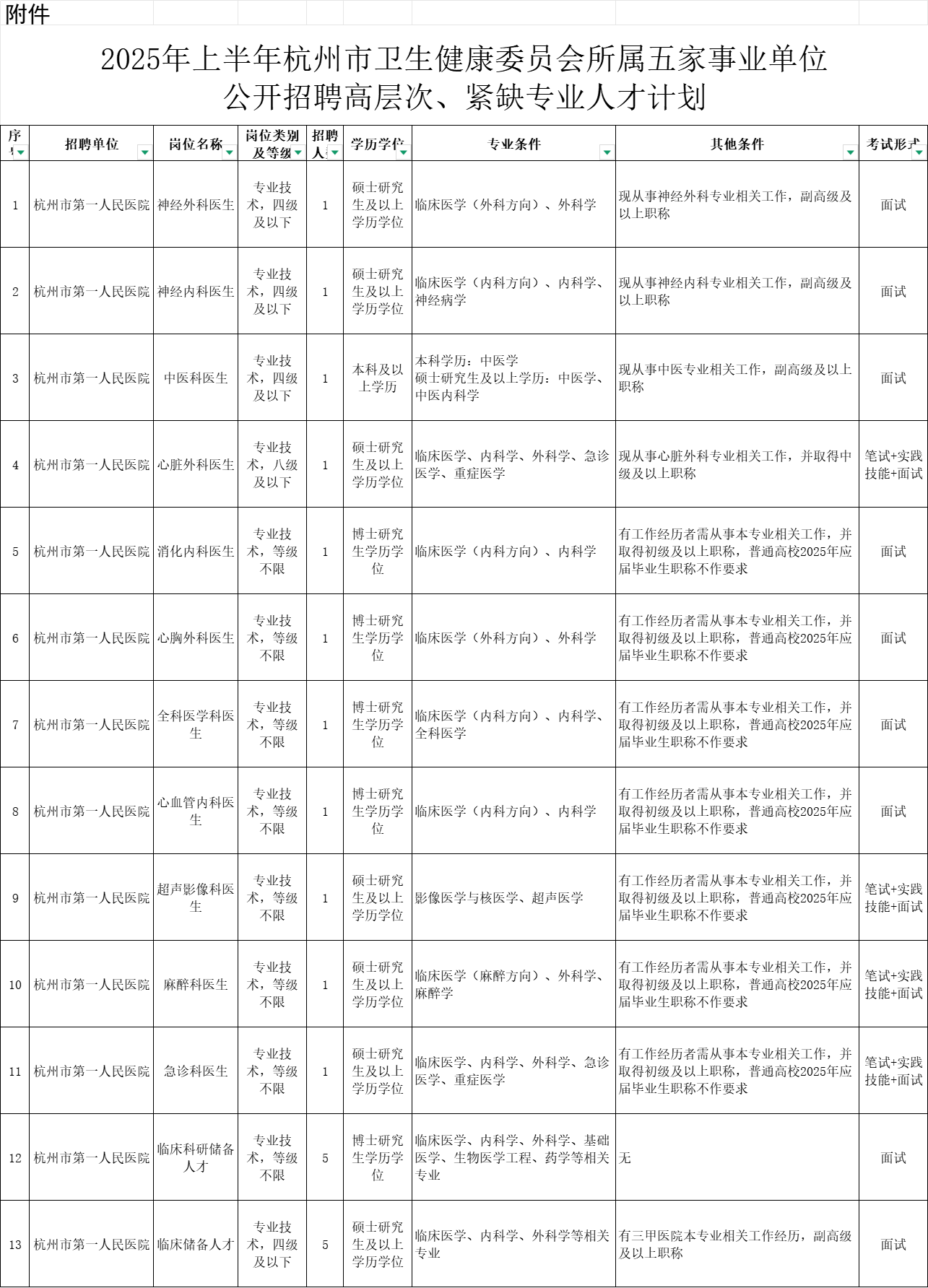 根据工作需要,杭州市卫生健康委员会所属杭州市第一人民医院、杭州市肿瘤医院等5家财政适当补助事业单位决定面向社会公开招聘事业编制高层次、紧缺专业人才68名。按照《中共中央组织部 人力资源社会保障部关于进一步做好事业单位公开招聘工作的通知》(人社部发〔2024〕57号)、《杭州市事业单位公开招聘工作人员操作程序(试行)》(杭人社发〔2014〕380号)等文件规定,现将有关事项公告如下: