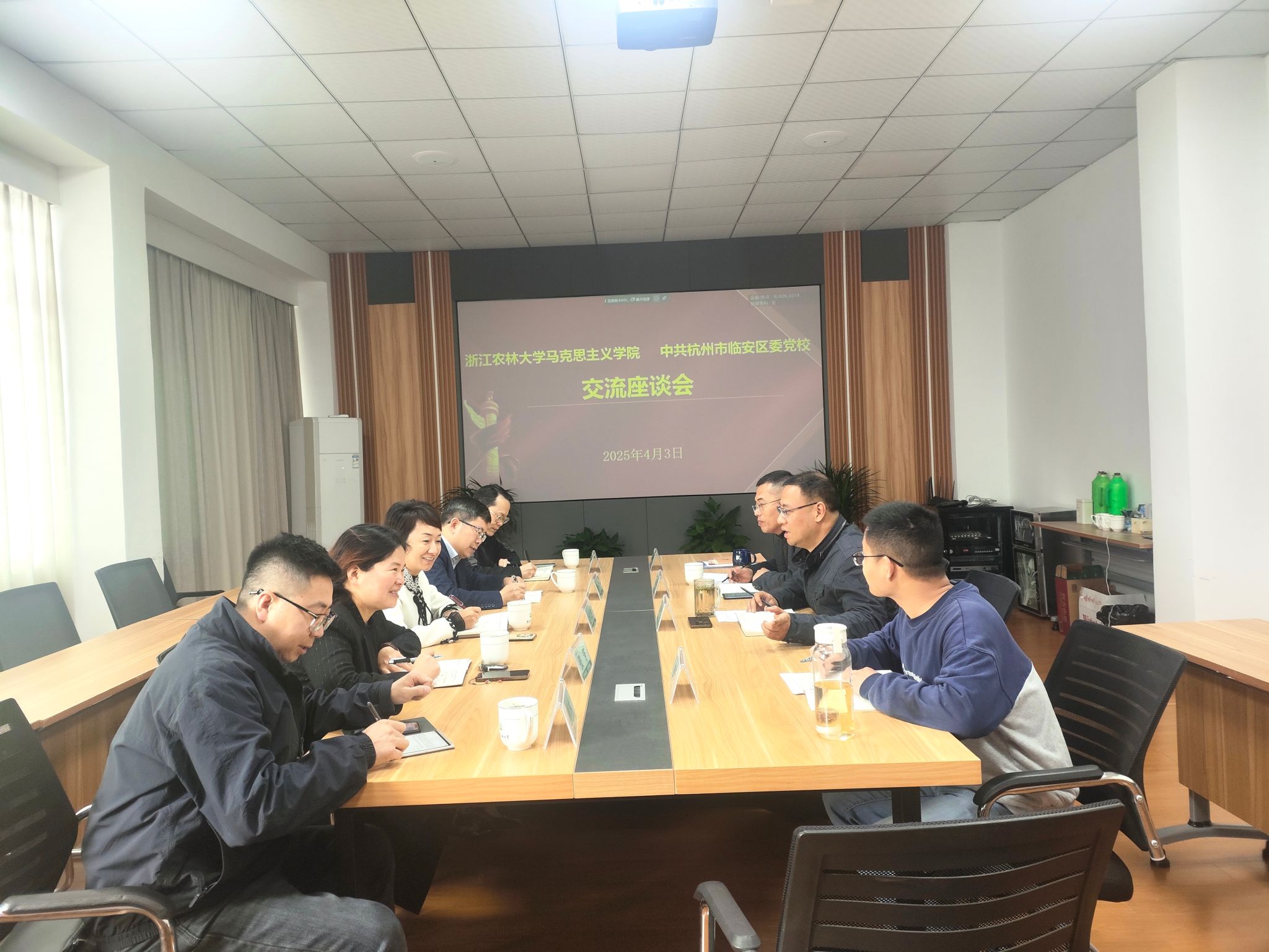 4月3日,临安区委党校常务副校长金琴波一行5人到马克思主义学院开展交流座谈,学院党总支书记周凯等相关成员参加了座谈。