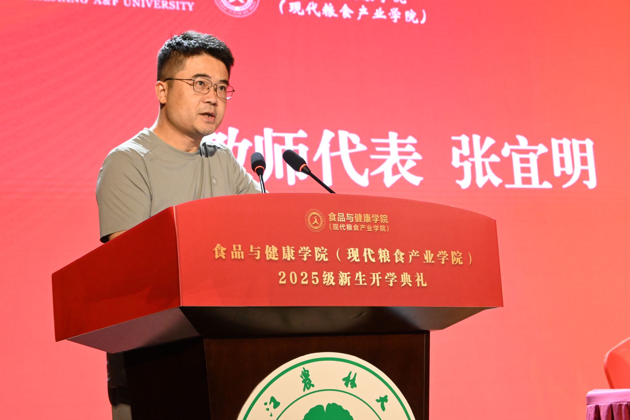 院长闵伟红发表迎新致辞,代表学院全体师生向2025级新生的到来表示衷心祝贺和热烈欢迎。她详细介绍了学校与学院的发展历程、学科专业特色、人才培养模式、师资力量以及科研平台建设等方面的情况。闵院长强调,选择“农林”领域应当心怀“家国情怀”,这是青年人立身之本,也是一代代人以实际行动书写的对祖国的赤诚。同时,她鼓励同学们要“格物致知”,以严谨的态度深耕专业,锤炼过硬本领,在实践中求真知、解难题。最后,闵院长寄语全体新生,希望他们在各自的领域不断追求卓越、实现新的突破。
