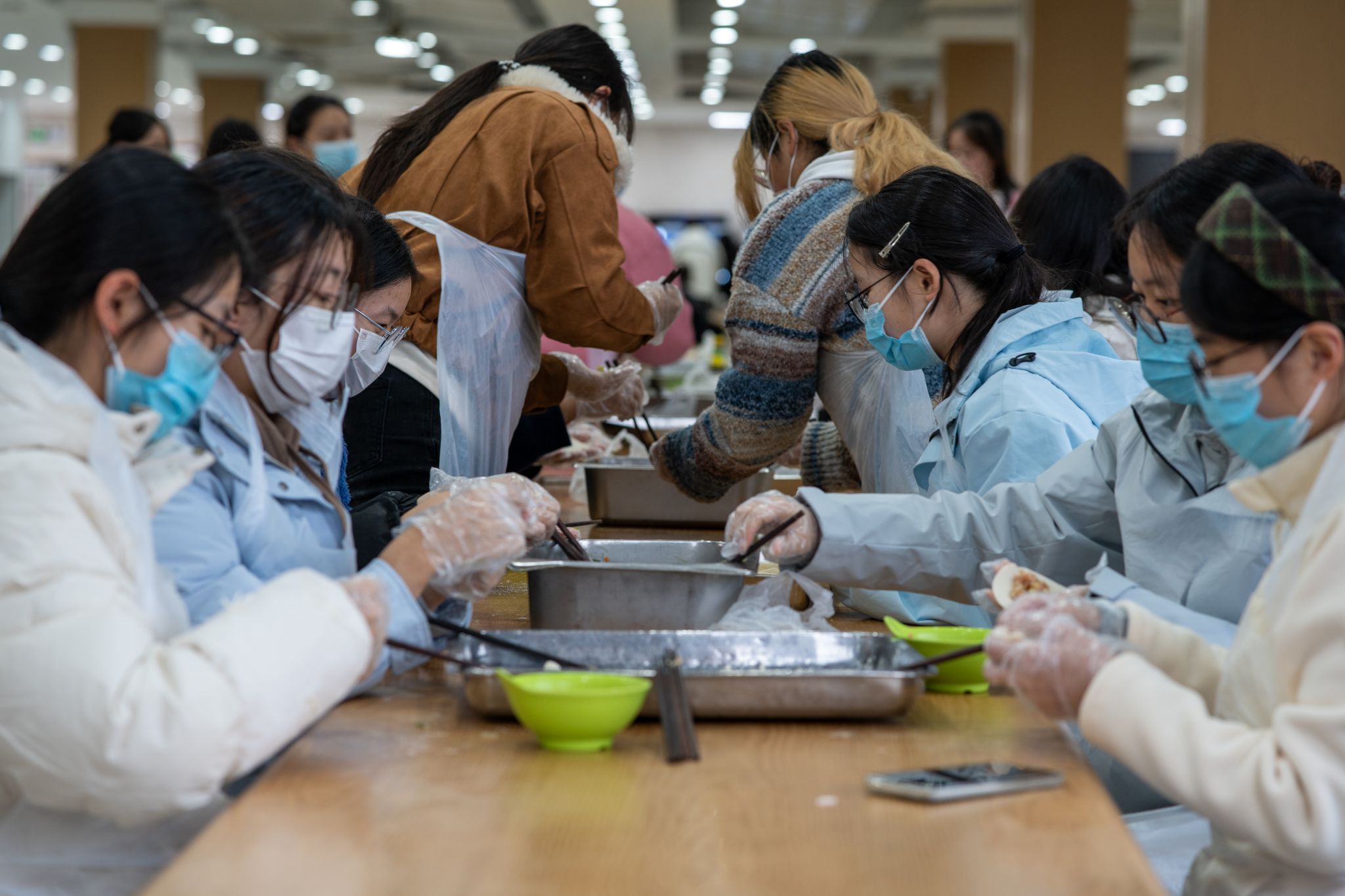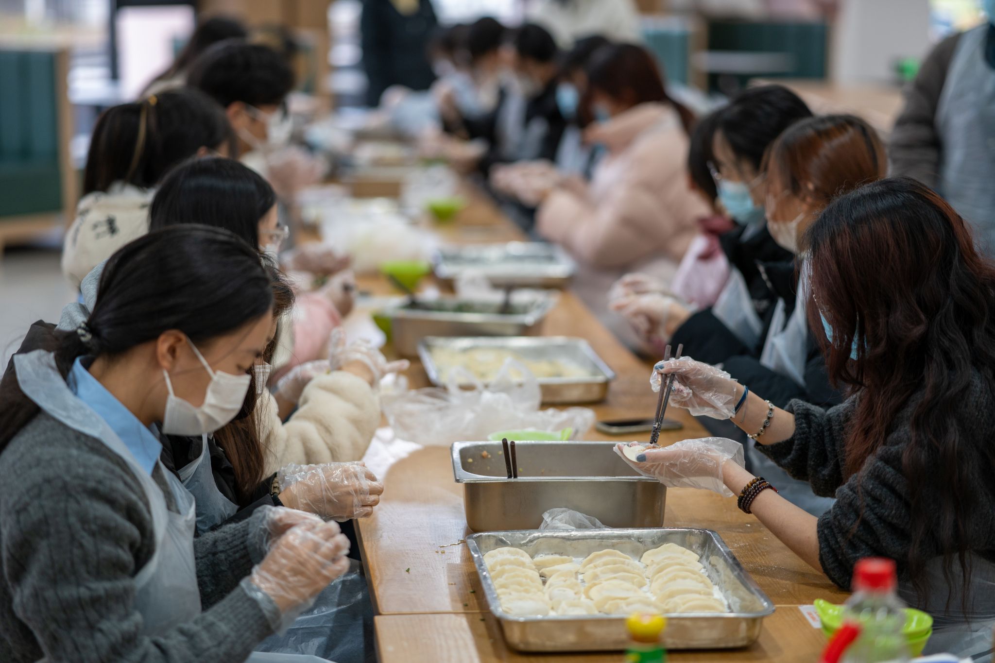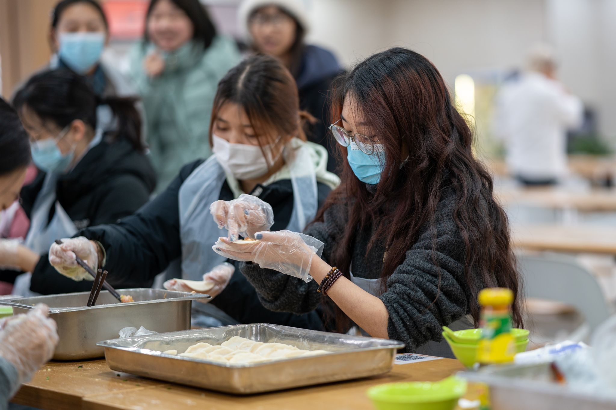 活动现场暖意融融,氛围热烈而温馨。同学们自发分工、默契配合,揉面、擀皮、包馅,每个环节都有条不紊。大家各展身手,包出的饺子形态各异:有的状如元宝,寄托着招财进宝、富足顺遂的美好期许;有的形似柳叶,承载着生机盎然、一帆风顺的诚挚祝愿。欢声笑语萦绕在现场,一个个饱含心意的饺子逐渐成形,将冬日的寒意驱散得无影无踪。