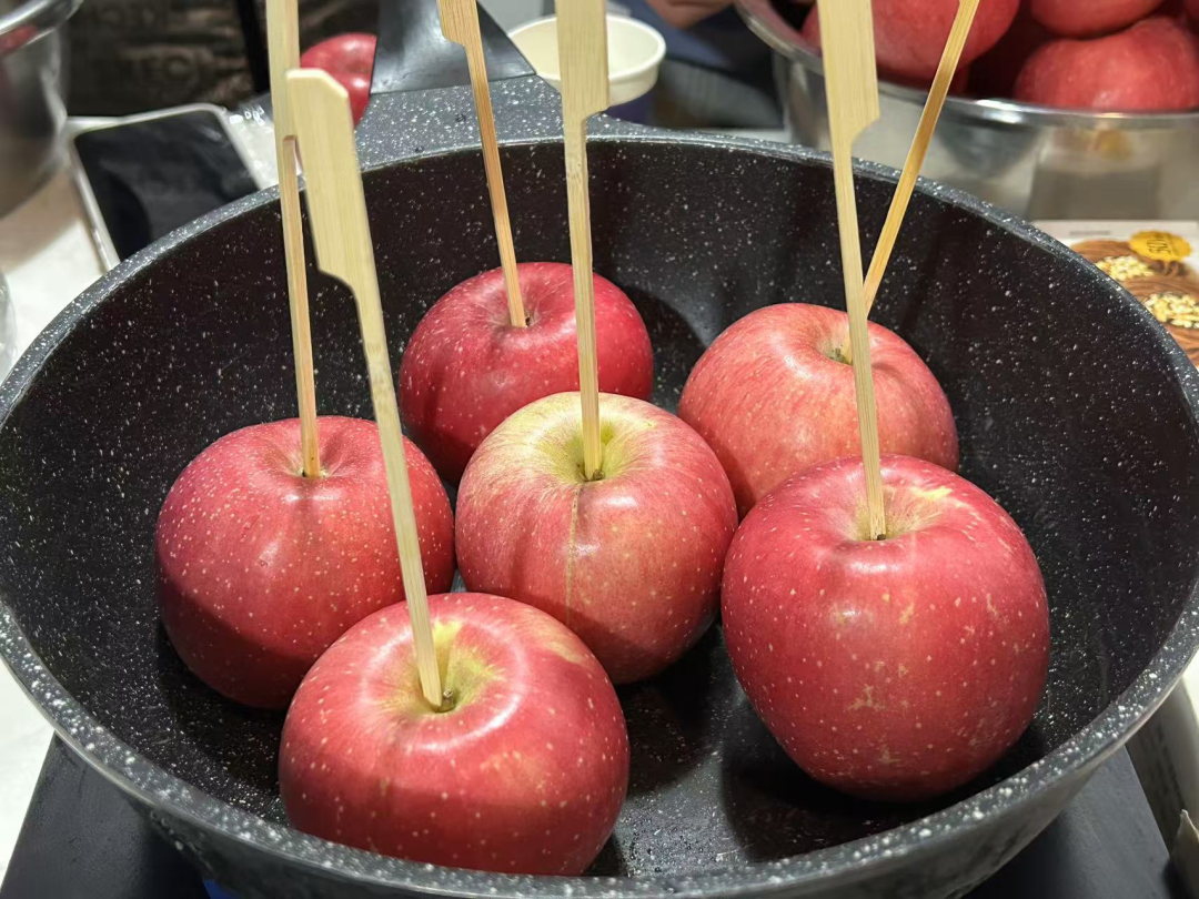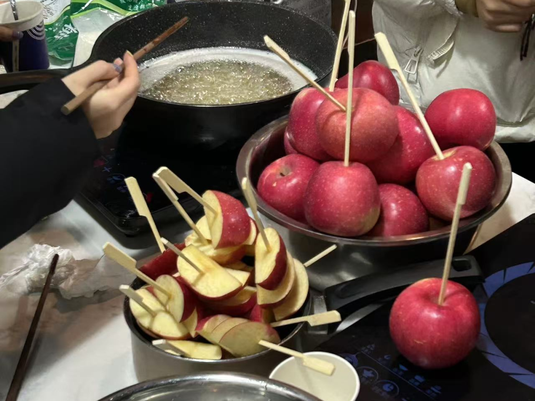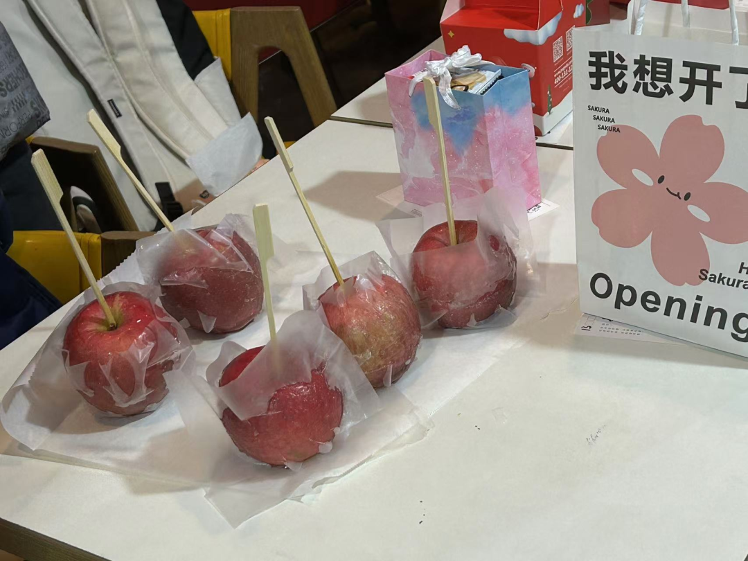 活动当天,两个协会的负责人们贴心地为大家准备了平安果,寓意平安吉祥。为了将传统与现代相结合,他们别出心裁地将糖衣裹在苹果上,制成了精美的糖苹果,不仅美观可口,更增添了喜乐氛围。