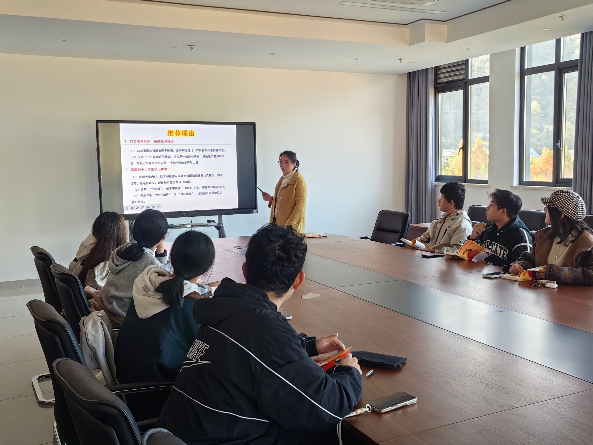 11月26日,食品与健康学院《遇见未知的自己》师生共读小组读书分享交流会准时举行。许卫群老师与学院大一新生一道以文学为桥梁、以心灵为指引,共同探寻自我认知的深层奥秘,在思想的交流碰撞中完成了一场温暖的心灵修行。