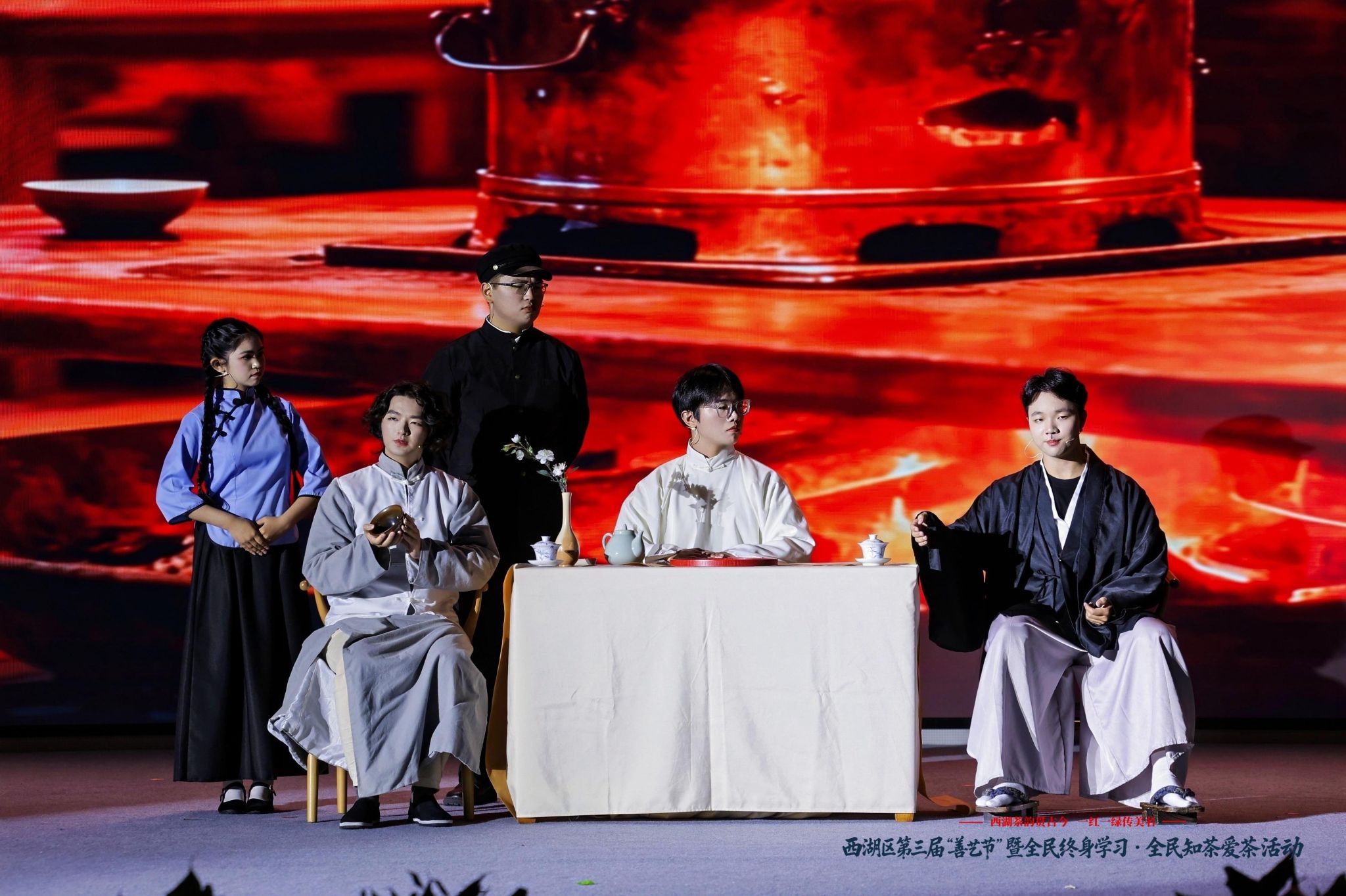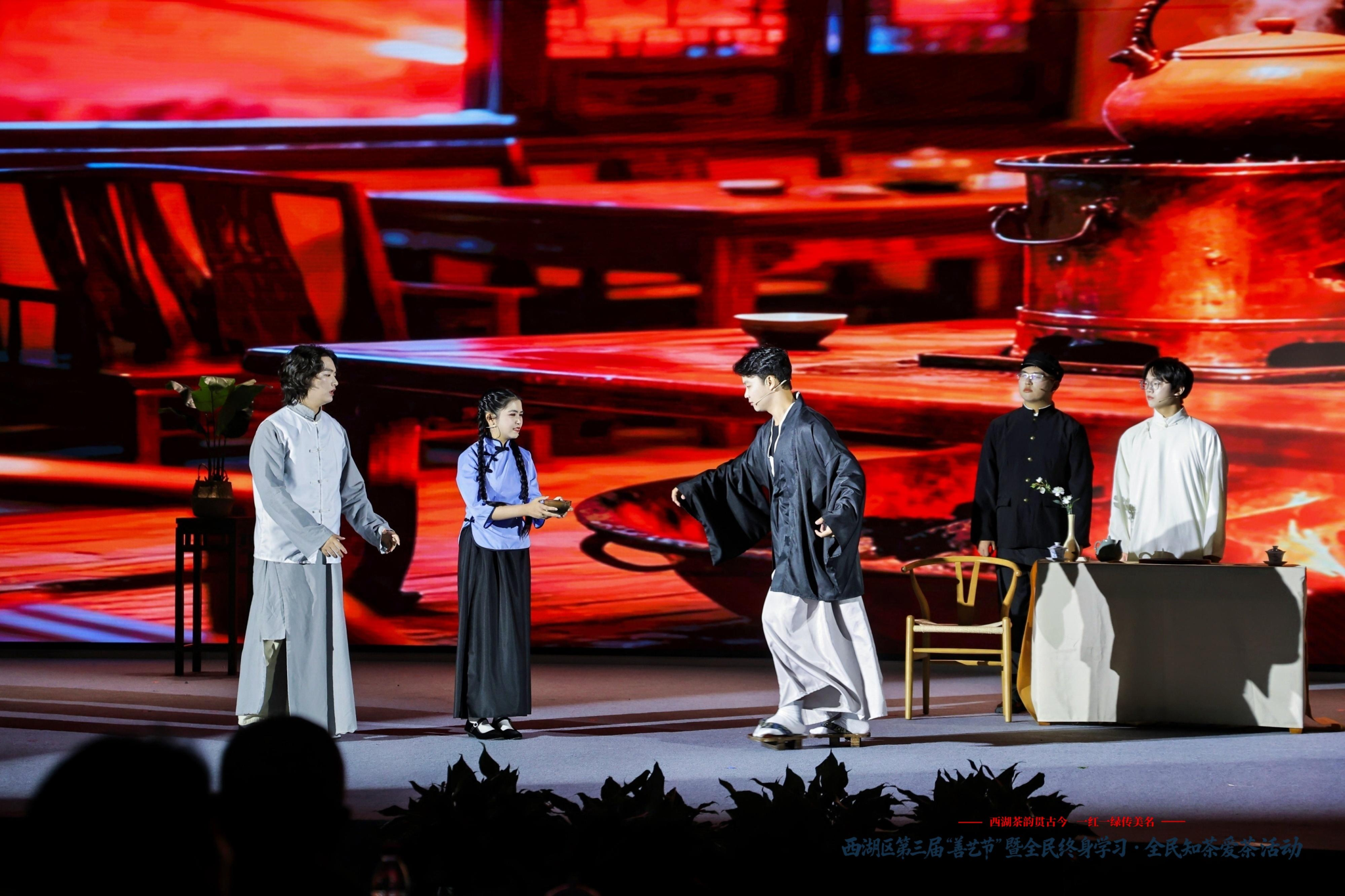 本次“善艺节”以“西湖茶韵贯古今一红一绿传美名”为主题,是中华茶奥会与全民终身学习周的深度联动。我院选择以话剧形式参与,正是践行“茶文化传播”使命的创新实践——将文学经典转化为舞台艺术,让茶文化从课堂走向社会,从书本走进大众,充分契合“全民知茶爱茶”的活动理念。