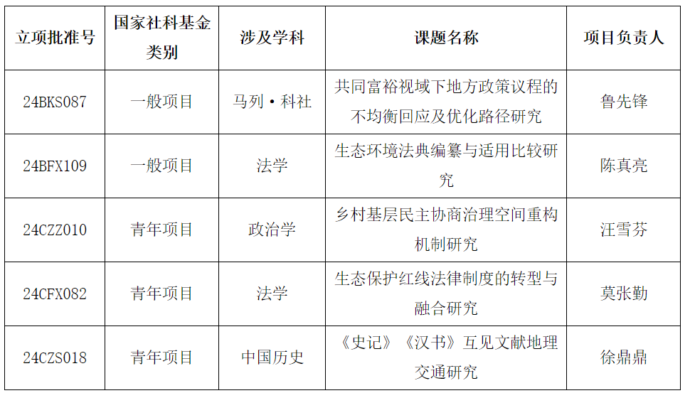 近日,全国哲学社会科学工作办公室公布了2024年度国家社会科学基金各类项目立项名单,文法学院获立5项(全校共9项),创我院国家社科年度立项历史新高。