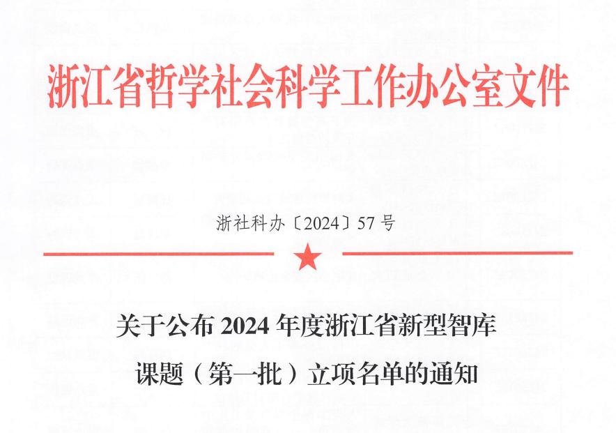 近日,浙江省哲学社会科学工作办公室公布了2024年度浙江省新型智库课题(第一批)立项名单,我院四位教师获2024年度浙江省新型智库课题(第一批)立项,具体立项信息如下: