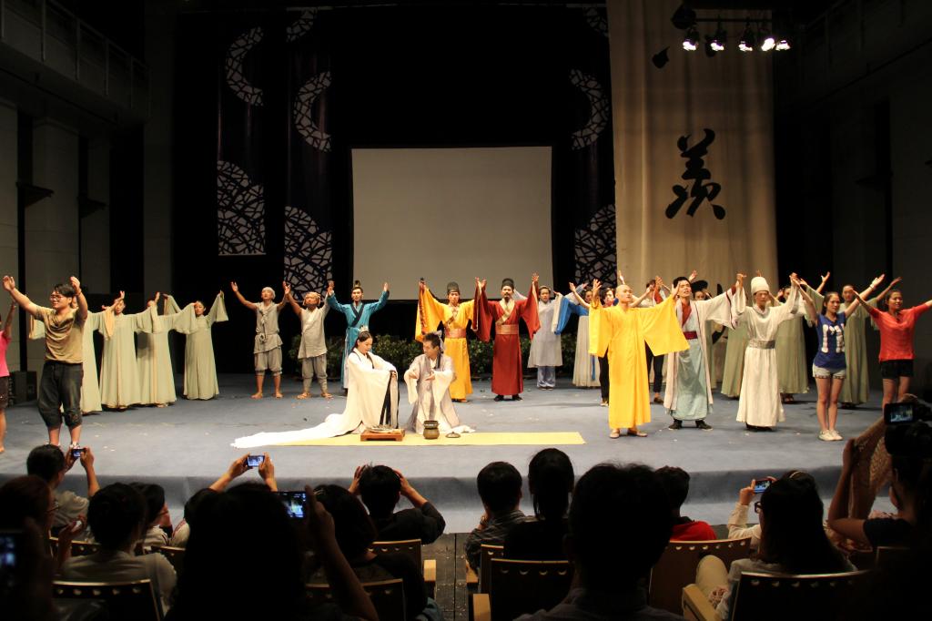 3.以茶为基,创作《中国茶谣》+升级版。2007年以来,打造了大型茶文化主题舞台艺术呈现《中国茶谣》、《六羡歌》、《南方有嘉木》等。《中国茶谣》做到了教学呈现、舞台呈现和学术呈现的有机结合:教学呈现上,《中国茶谣》作为选修课开放,通过理论和实践教学,让学生更好把握专业知识;学术呈现上,开展“中国茶谣与文学”、“中国茶谣与戏剧”、 “中国茶谣与茶礼”等多个课题研究。