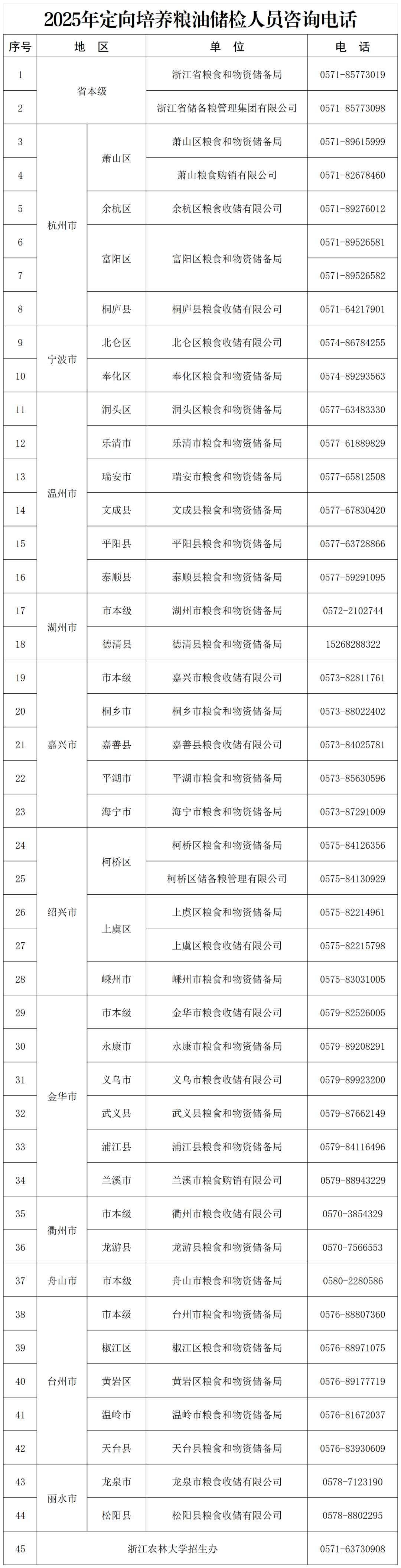 经浙江省粮食和物资储备局、浙江省教育厅批准,2025年由我校继续承担定向培养粮油储检人员工作,为全省各级粮食物资系统用人单位定向培养粮油储检人员60名,招生专业为食品科学与工程(粮油储检)。有关招生事项简介如下: